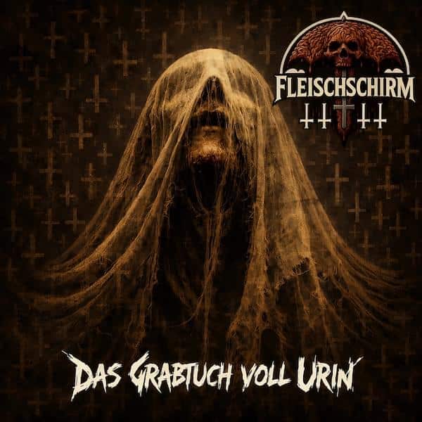 „Das Grabtuch voll Urin“ ist eine Single, die ihren Provokationsfaktor mit erfreulich viel Substanz unterfüttert. Fleischschirm liefern hier keinen platten Skandal-Gag, sondern einen aggressiven, finsteren und handwerklich starken Death-/Thrash-Track, der mit Sounddesign, Riffarbeit und kluger Dramaturgie überzeugt. Die düstere Atmosphäre sitzt, die Komposition hat Biss, die Musiker zeigen Können, und der Humor funktioniert gerade deshalb, weil die Band ihn nicht wie einen Karnevalsorden vor sich herträgt. So klingt ein Song, der die Stirn runzeln lässt, das Zwerchfell kurz zucken lässt und danach mit voller Wucht im Nacken hängen bleibt.